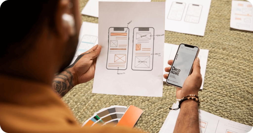 Once the idea of the mobile app is exchanged between the team and the client, we proceed with UX design, UI design, and branding.